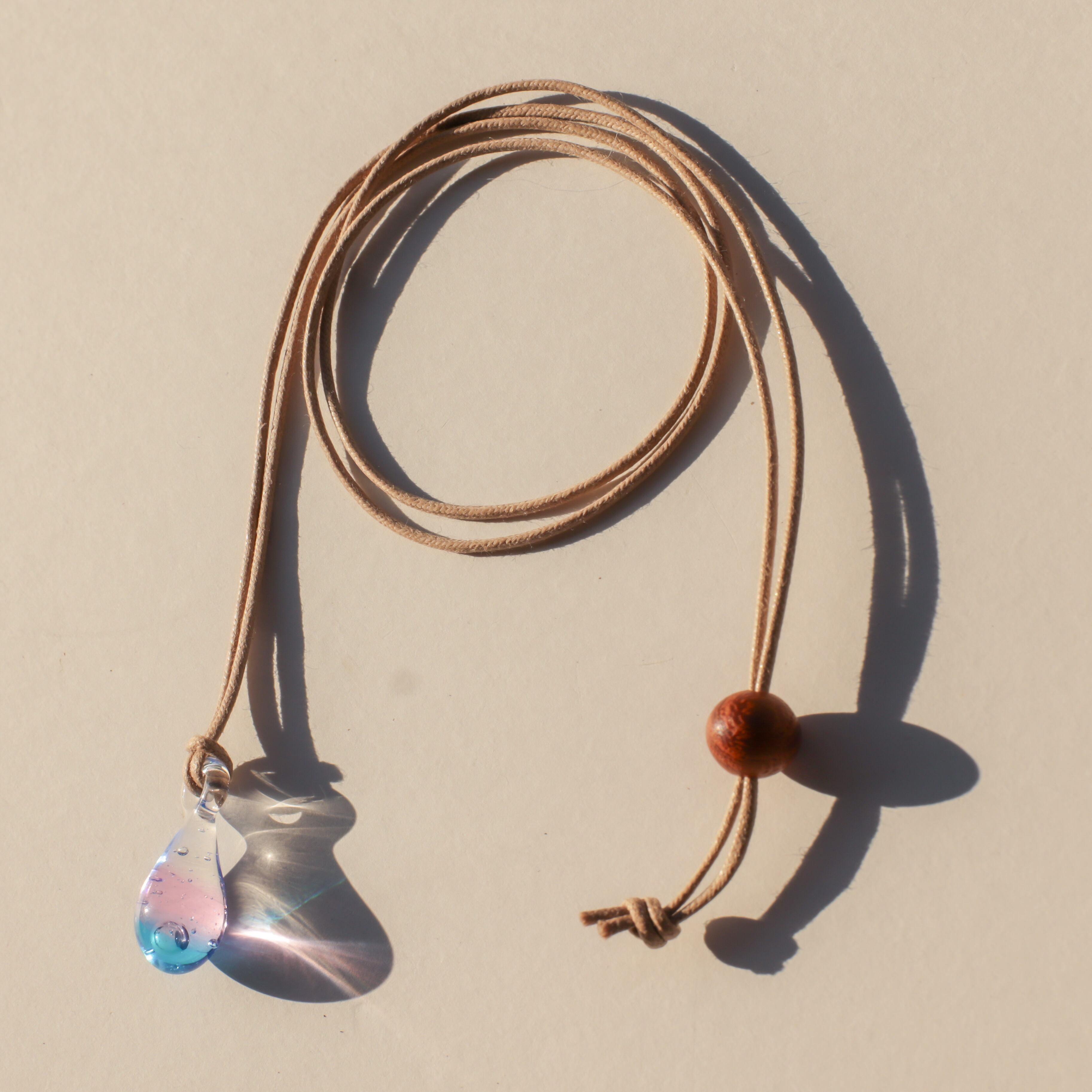 一日のはじまりを閉じ込めたたガラスのネックレスです。