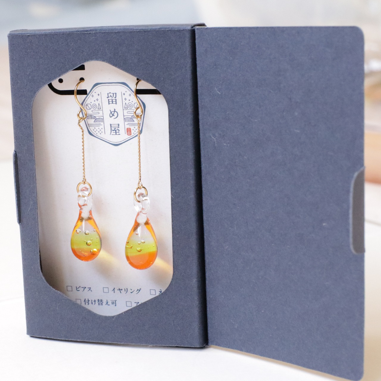 秋の香りを運ぶ金木犀を閉じ込めたガラスのネックレスです。