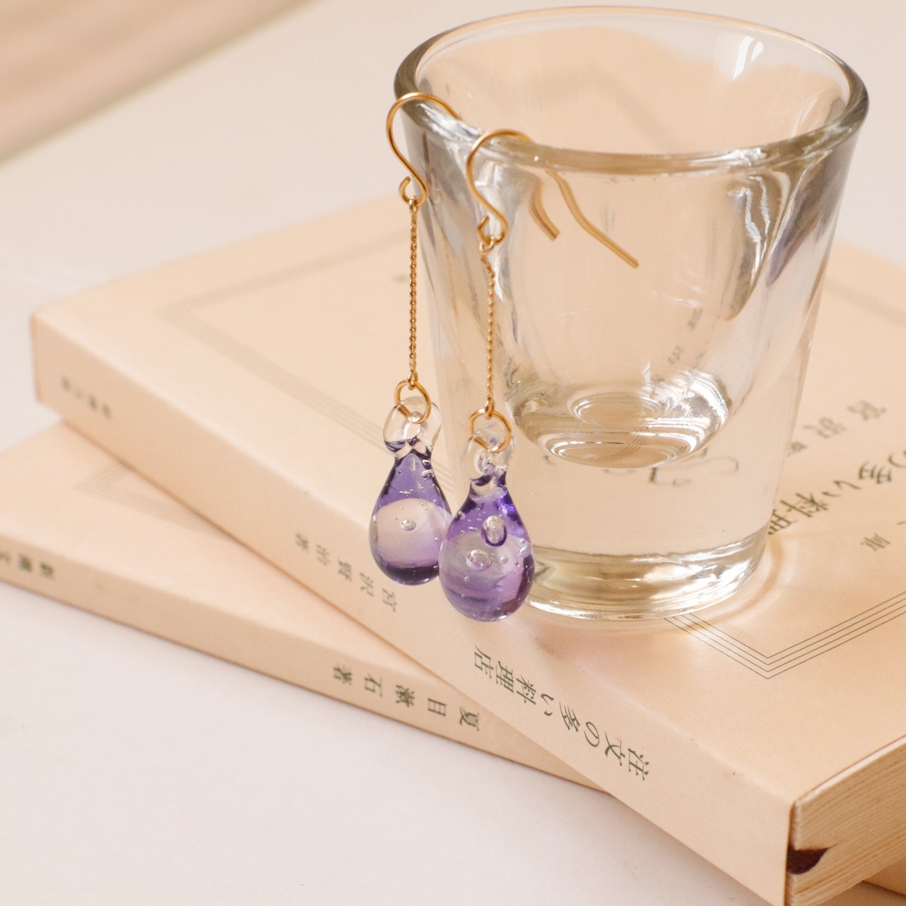 静謐に咲く竜胆をイメージしたガラスのピアスです。
