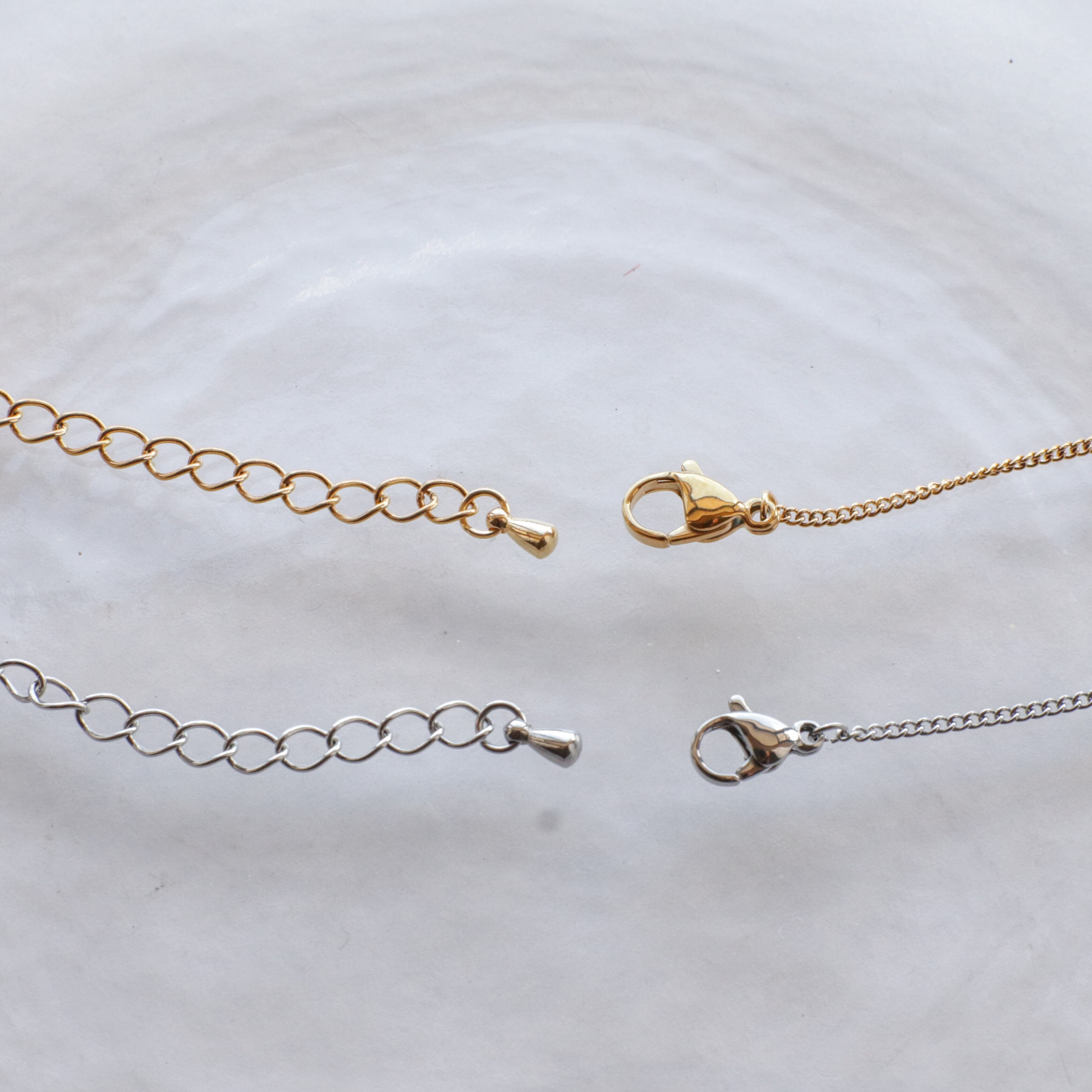 ロウ引き紐は普段使いが多い方に、ネックレスチェーンはフォーマルな場にも