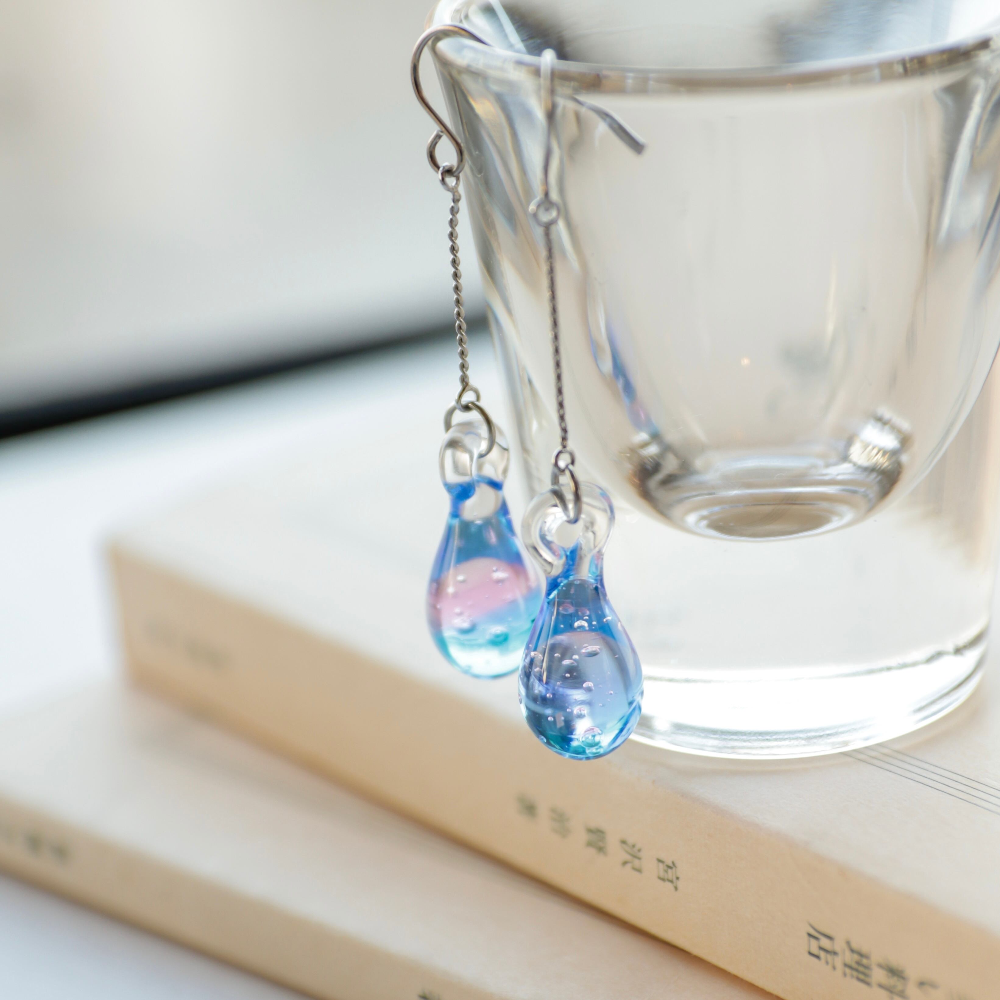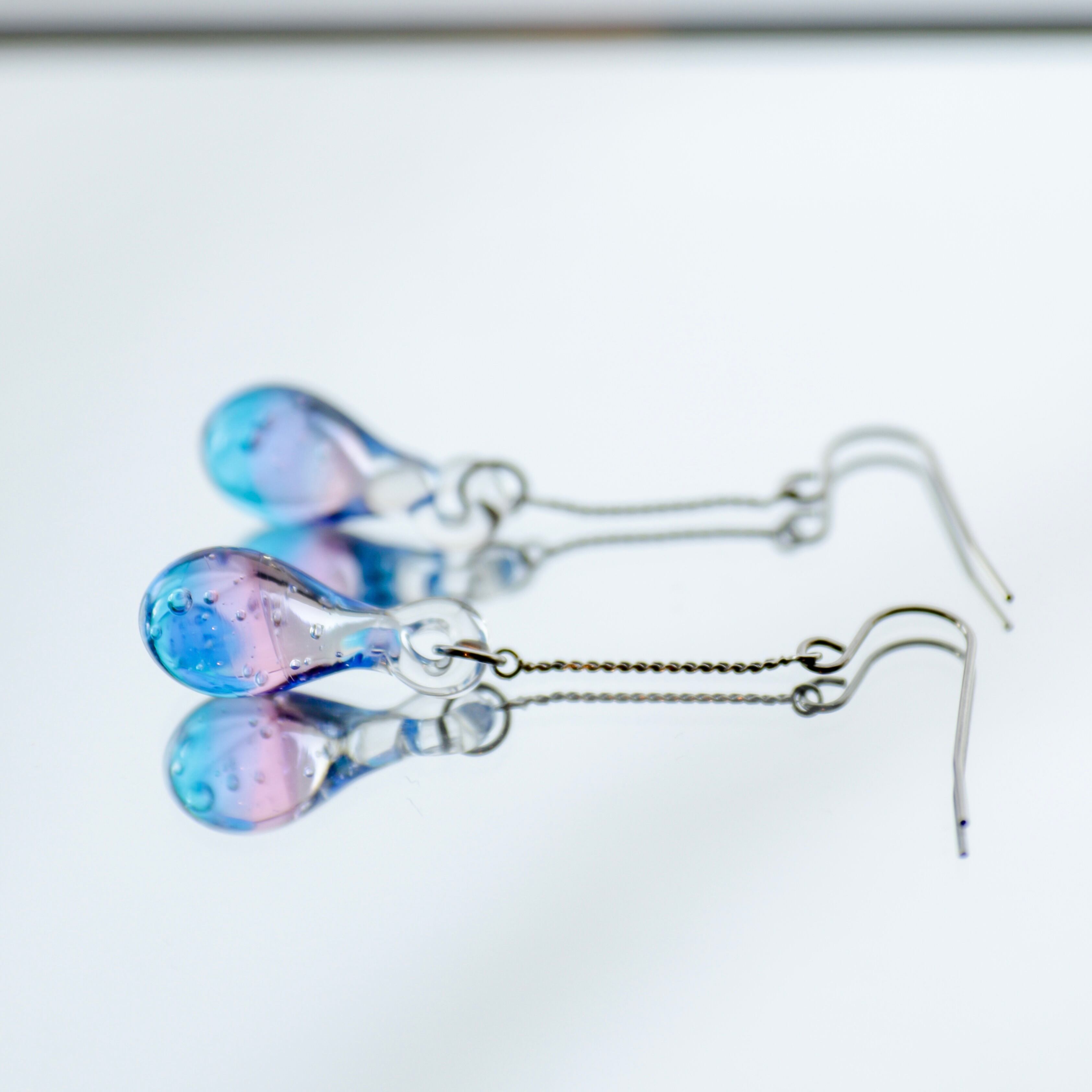 透明、水色、ピンクのガラスを使うことで綺麗なグラデーションになっています。